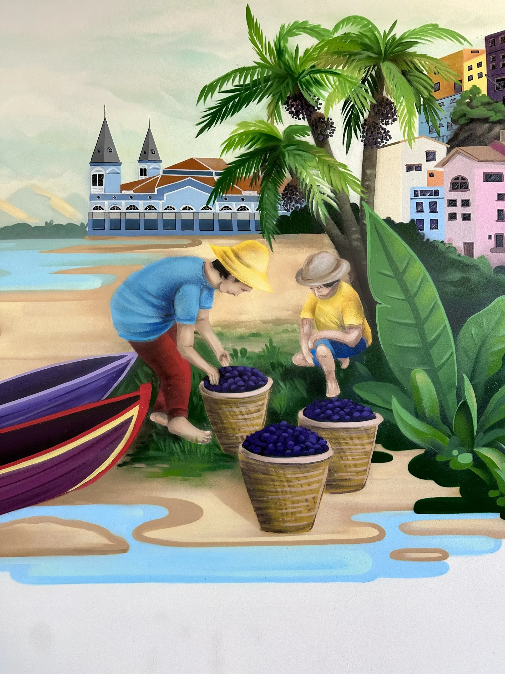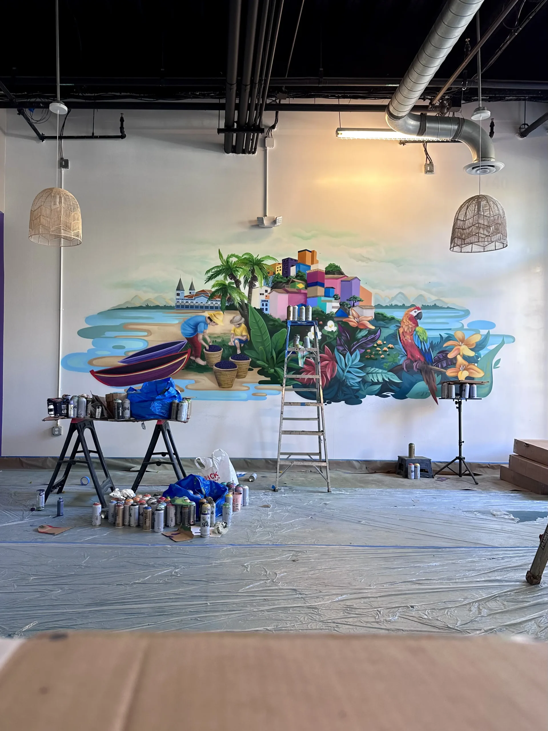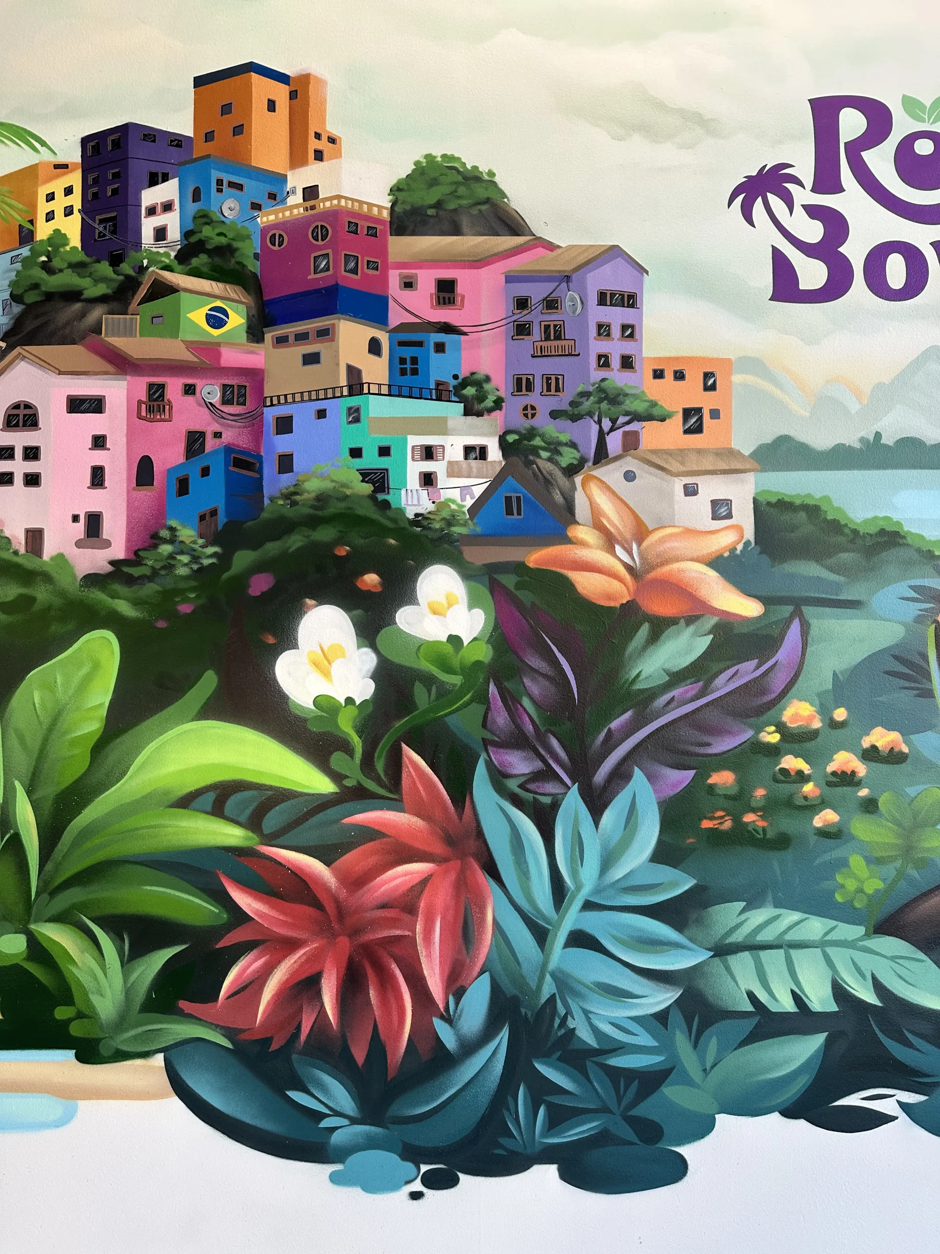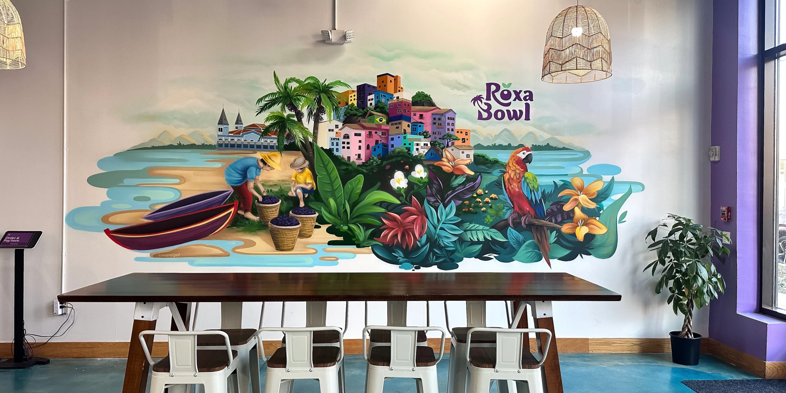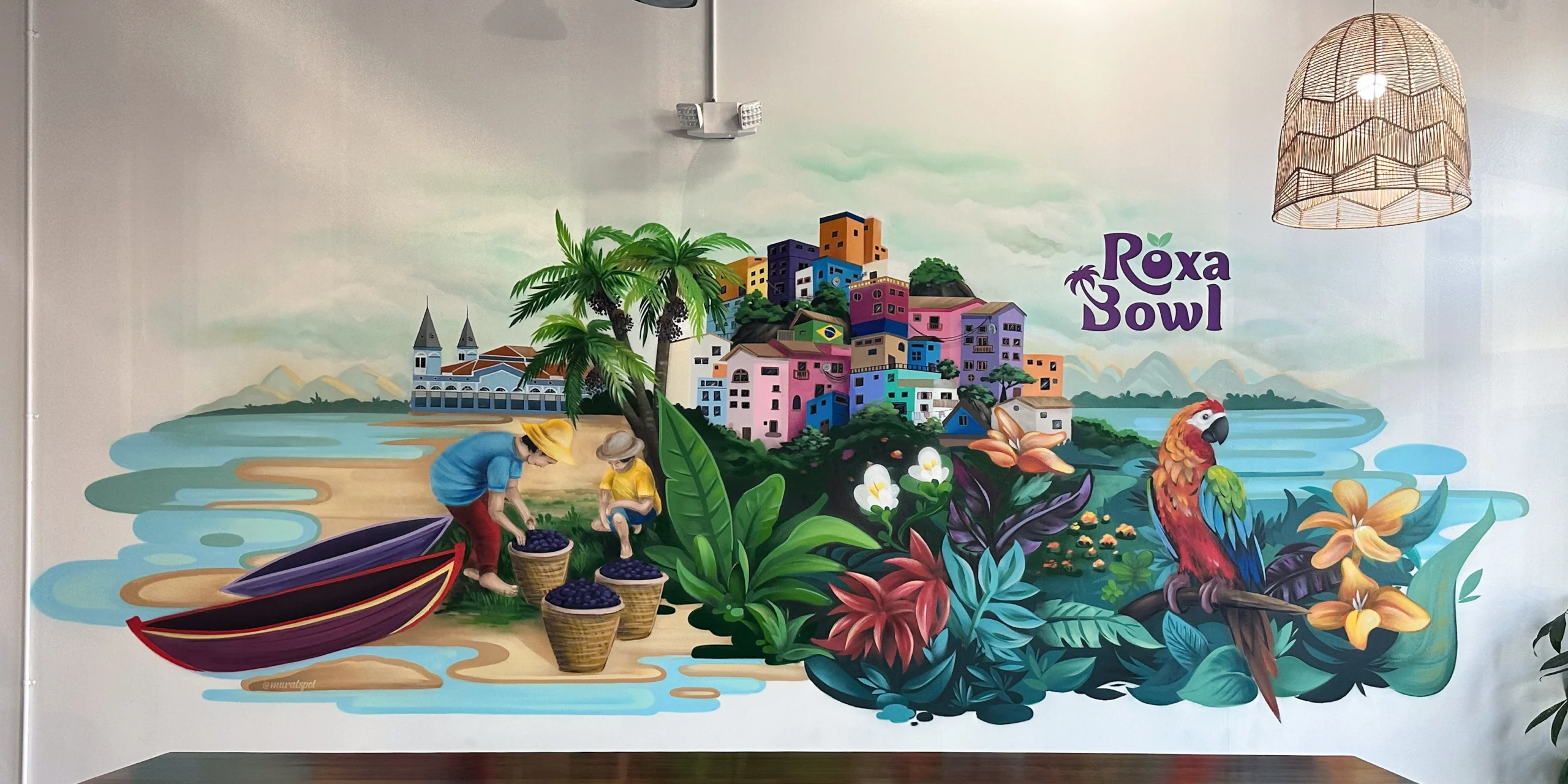 This vibrant collage mural was created for Roxa Bowl, a restaurant celebrated for its açaí bowls and fresh, fruit-based offerings. The mural beautifully blends Brazilian landscapes, cultural elements, and scenes of harvest, bringing a touch of tropical warmth and authenticity to the space. It perfectly reflects the restaurant’s theme and invites guests to enjoy a little piece of Brazil with every visit.